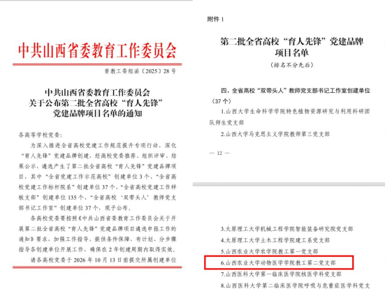 近日,省委教育工委公布第二批全省高校“育人先锋”党建品牌项目名单,我校7个党建项目成功入选,其中我院教工第二党支部入选全省高校“双带头人”教师党支部书记工作室创建单位,这是学院党建工作与业务工作深度融合的又一重要成果。
