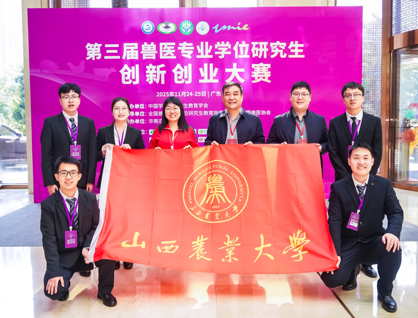 11月25日,第三届兽医专业学位研究生创新创业大赛决赛在广州举行。由我院中兽医药现代化山西省重点实验室李宏全、孙娜教授指导,以丁文文博士为队长,上官琳晖、张司寰、贺子龙、刘金涛为队员组成的“兽用组分中药领跑者”团队入围决赛并获全国二等奖。该团队已连续两年在此项比赛中入围决赛并获奖。