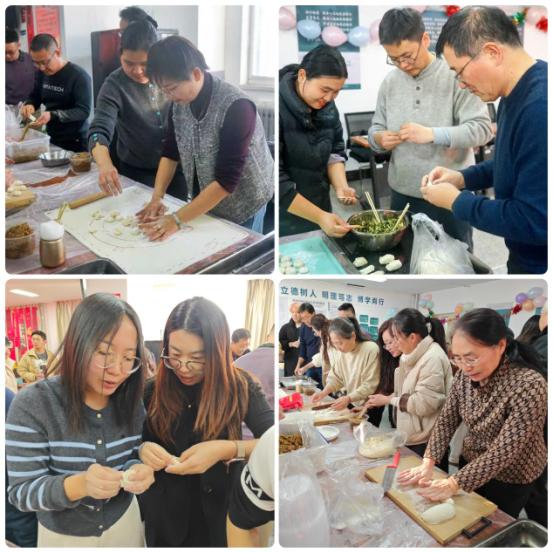 活动的压轴节目是“百家宴”分享。老师们带来的各式拿手家常菜琳琅满目,与热气腾腾的饺子一同构成了丰盛的宴席。大家围坐品鉴,交流厨艺,共享“家”的味道。霍乃蕊老师带来的清新独特的槐花馅饺子,更是收获了现场的一致好评。期间,多位幸运的老师吃到了藏有硬币的饺子,并参与了现场抽奖。