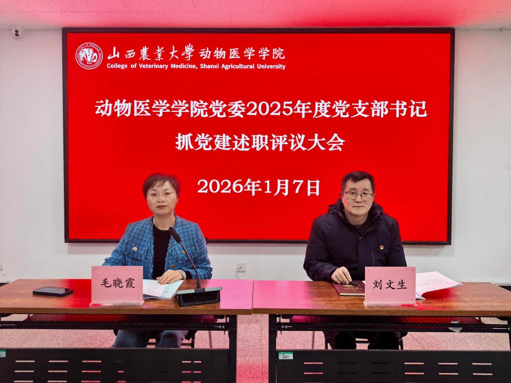 1月7日下午,院党委在太谷校区实验大楼412会议室召开2025年度党支部书记述职评议大会。院党委书记刘文生听取汇报并作点评,院党委副书记毛晓霞主持会议,院属各党支部书记、支部委员及党员、群众代表参加会议。