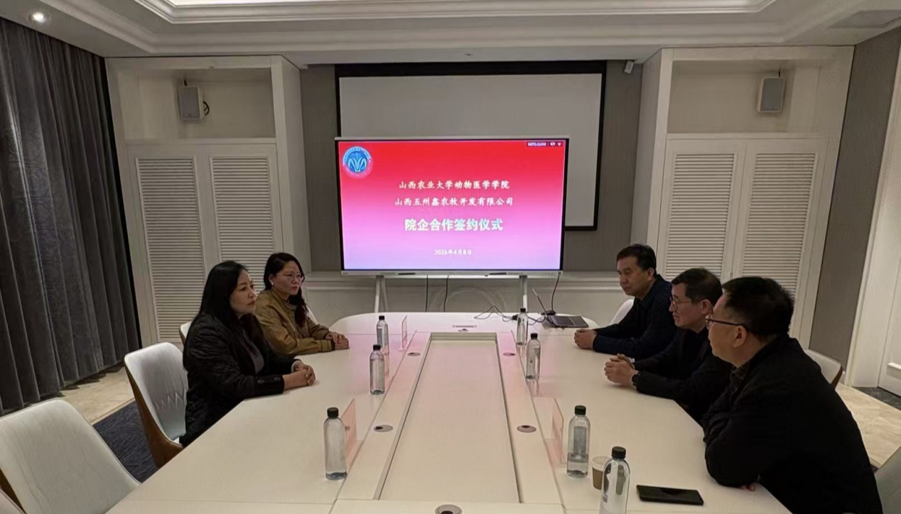 4月8日,学院与山西五州鑫农牧开发有限公司院企合作签约仪式在太谷顺利举行。院党委书记刘文生、山西五州鑫农牧开发有限公司董事长王豫霞、太谷区畜牧产业中心兽药站站长白莉出席仪式,我院副院长孙耀贵主持仪式,院实习实训中心主任吴国清参加活动。